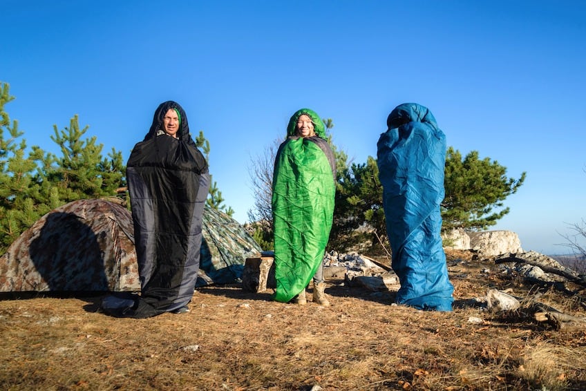 Sobald der Gefrierpunkt unterschritten wird, bietet dir ein Schlafsack wesentlich mehr Isolation – einerseits durch das platzsparende Design und den Reißverschluss, andererseits durch die Kapuze.